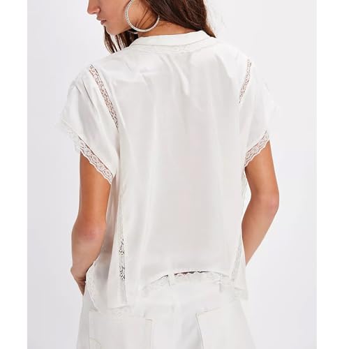 HOT ! Women Y2k Sheer Lace Trim Button Up Tank Tops Cute Front Tie Up V Neck Going Out Blouse Shirts Vest Summer