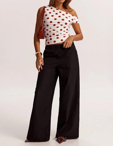 • Coquette Clothes: Y2k cute polka dot crop tops for women, retro romantic polka dot printed throughout one shoulder tops, ruched side off shoulder tank vest tops, asymmetrical slant neck dots graphic tops for 90s e-girls trendy polka dot summer outfits