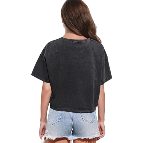 KEEVICI Cropped T Shirts for Women Vintage Baggy Solid Color Basic Tees Acid Wash Cotton Tshirt Black Grunge Crop Tops 5
