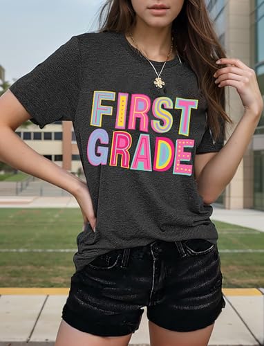 • 🌸 FEATURE: Cute teacher t-shirt, FIRST GRADE print on the front, classic crew neck and short sleeve style. When you wear the kindergarten shirt in the crowd, you will be the most positive one.
