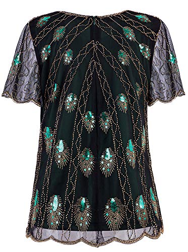 Vijiv Women's 1920s Vintage Beaded Evening Top Art Deco Scalloped Hem Peacock Sequin Embellished Blouse Tunic 6