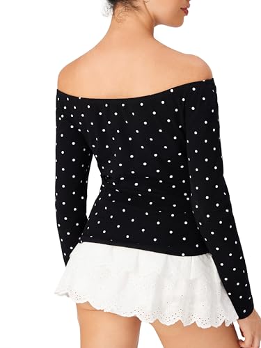 CIDER Women Polka Dot Going Out One Shoulder Y2k 2025 Fall Long Sleeve Fit Cute Top Casual Shirts 6