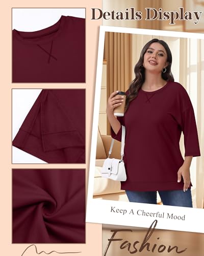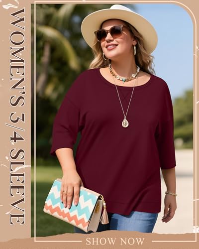 • 3/4 Sleeve and Side Slit Design: this women's large size t shirts features a classic 3/4 sleeve and side slit design, make it fit your body shape well, creating a casual look, suitable for various informal or semi formal occasions