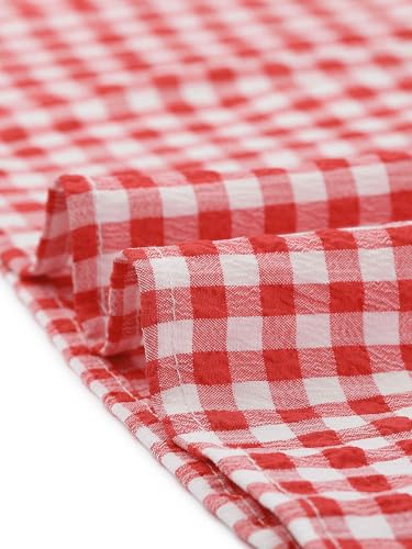 Allegra K Gingham Top for Woman's 2025 Plaid Peasant Round Neck Ruffles Cute Puff Sleeve Tops 5