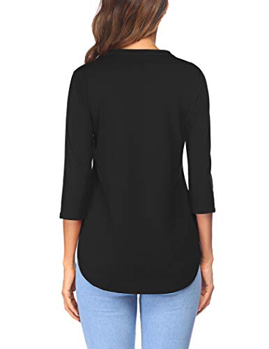 Sherosa Women's 3/4 Sleeve Shirts V Neck Casual Henley Work Tops Blouses 3