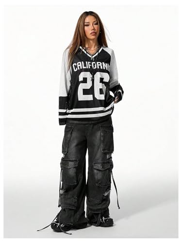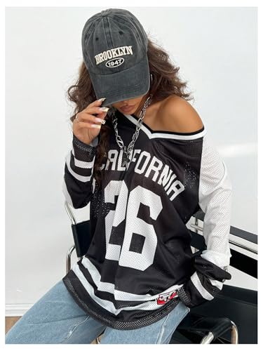 HOT ! Women's Y2k Baggy Jersey Oversize T Shirt Letter Number Graphic Sport Soccer Jersey Striped Football T Shirts Tops
