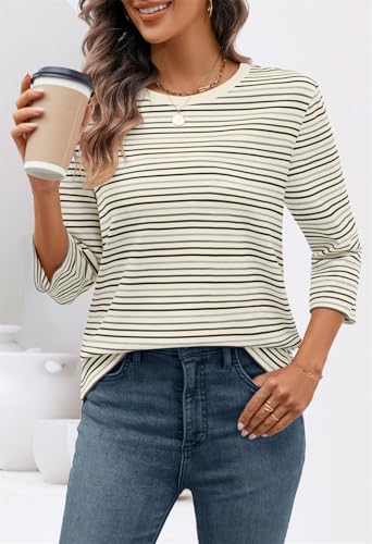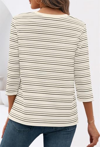 • Features: These dressy tops for women feature a classic crew neck, colorful stripes, 3/4 length sleeve womens tops, a ribbed neckline, loose fit, cute style, trendy summer shirt for casual and work, ladies tops and blouses