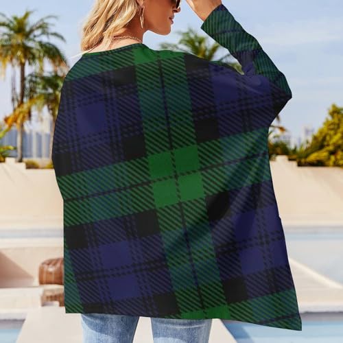 Black Watch Plaid Womens Long Sleeve T-Shirt Tunic Loose Fit Tee Tops for Leggings 6
