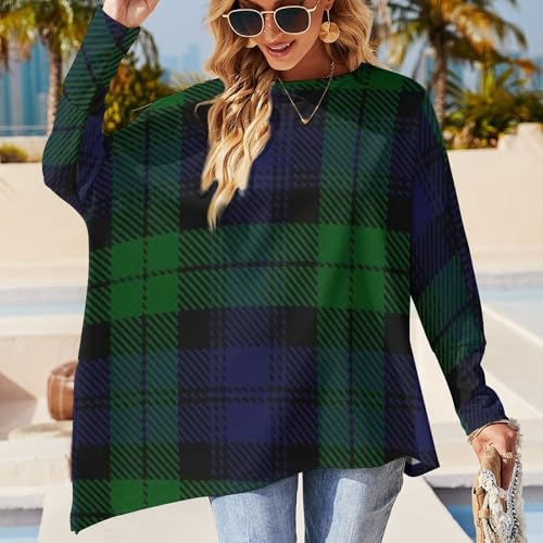 HOT ! Black Watch Plaid Womens Long Sleeve T-Shirt Tunic Loose Fit Tee Tops for Leggings
