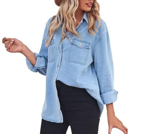 More information about Women's Spring Long Sleeve Pocket Denim Jean Button Down Shirt Business Blouse