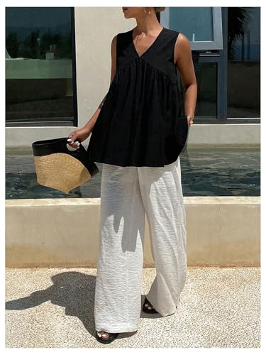 SweatyRocks Women's Summer Ruffle Tank Tops Sleeveless V Neck Loose Flowy Tunic Shirts 1