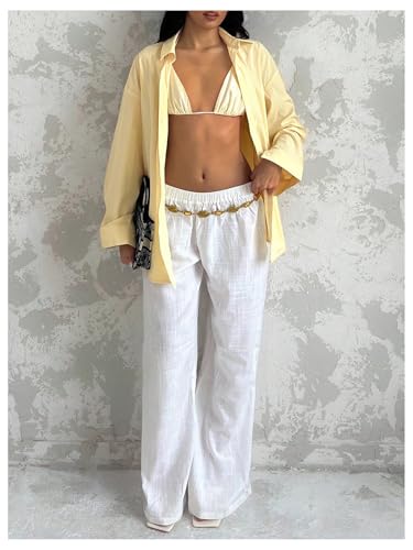 • Match: Oversized button down shirts for women can be paired with crop tops, tube tops, cami tops, bikinis, denim shorts, mini skirts, jeans, and so on