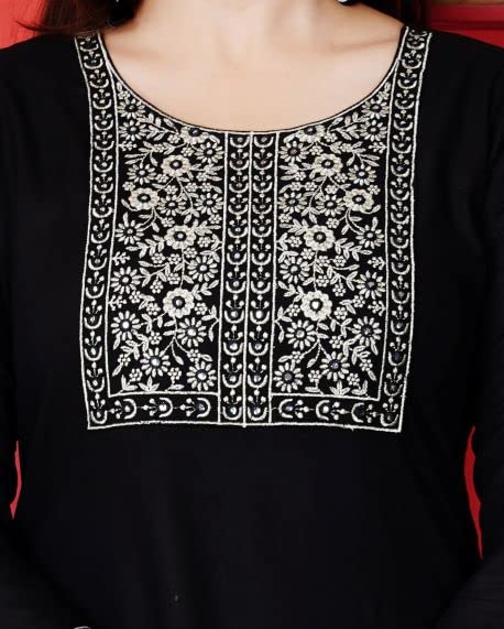 • Fabric: Rayon, Package Contents: It contains only 1 Black Straight Kurti 1 Pants 1 Chiffon Dupatta. First, wash dry and clean thereafter Handwash or Machine wash.