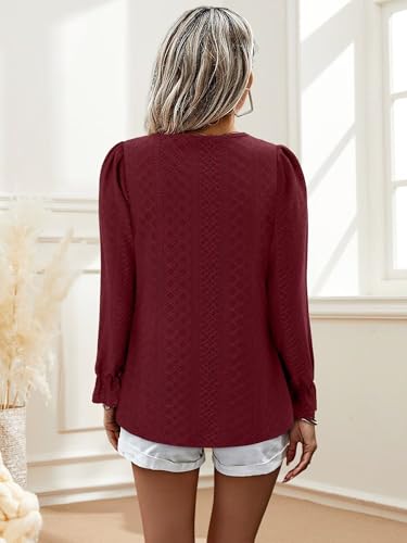 • ✿ Design: Women dressy long sleeve shirt, features eyelet design, cute puff sleeve babydoll tunics, loose fit pullover top easy to wear, classic crew neck, curved hem
