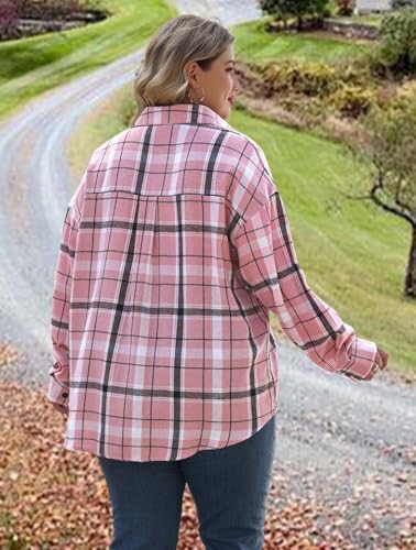 Womens Plus Size Buffalo Plaid Flannel Shirt Long Sleeve Collar Button Down Blouses Loose Lightweight Tops 4