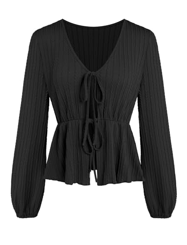 • VERSATILE LAYERING PIECE: The v neck tie front knit top is a versatile piece that can be worn in various occasions. Perfect for daily wear,street,lounge out, office, homewear, parties, fall and winter, back to school, Valentine‘s day, christmas, holiday and more for all the year round