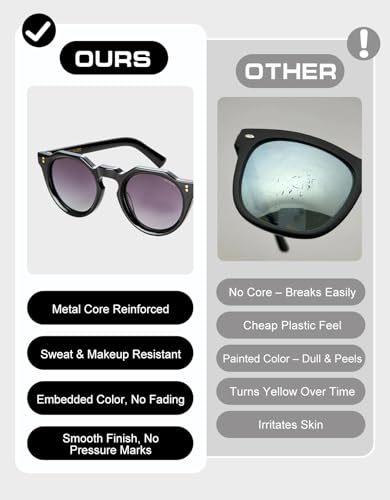 • 【Comfortable, No Pressure Fit】 Upgraded frame design with high-bridge support and flexible temples. Reduces pressure on the temples, prevents slipping, and fits a wide range of face shapes and nose bridges—no pinching, no discomfort.