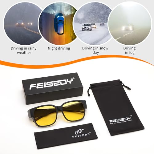 • Sunglasses Fit Over Glasses: FEISEDY night driving glasses are stylish sunglasses specially designed for those who have existing glasses such as reading glasses, etc. Simply place these wear over sunglasses to cover up your prescription glasses.