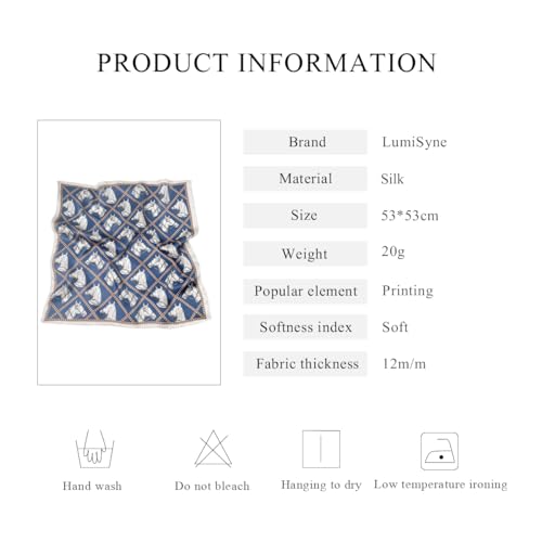 • MULTIPLE WEARING WAYS: Silk scarf measures 53 x 53 cm. Different wearing ways showcase a distinctive style. As a neckerchief to embellish a monotonous collar. Layer it with a necklace for a more stylish effect. As a headband or bandana, retro and sweet, creating a cool spring and summer vibe. As a hair tie for a layered hairstyle, smart and flowing. As a wristband, chic and funky. As decoration for handbag handles or hats, romantic and elegant. As a waist decoration, highlighting the waistline.