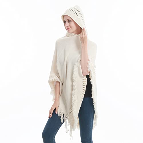 Women's Knit Cape Poncho Sweater with Fringes Pullover Shawls Wraps Capes 6