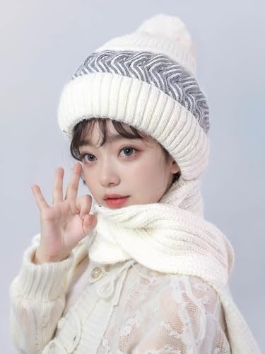 Christmas gifts,Christmas party decorations,winter beanie hat scarf gloves set for women,Women's Hat, Scarf, and Touchscreen Gloves Set for Cold Weather (White) 6