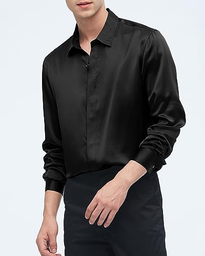 LilySilk Silk Mens Shirt Versatile 100% Charmeuse Silk Button Down Shirt Long Sleeves All Season for Formal Casual 1