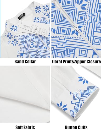 • 【Unique Design】: Mens white linen henley shirts features henley style ,zip up design, mandarin collar, long sleeve and african printed pattern