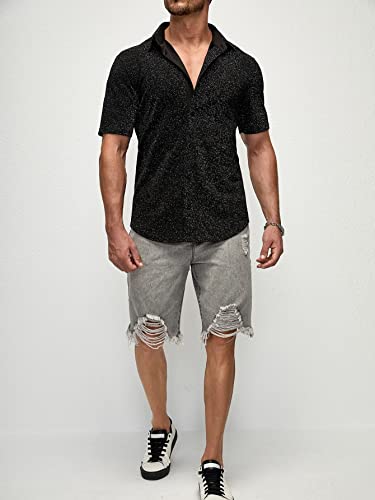 More information about WDIRARA Men's Button Front Short Sleeve Collar Glitter Shirt Metallic Party Club Tops