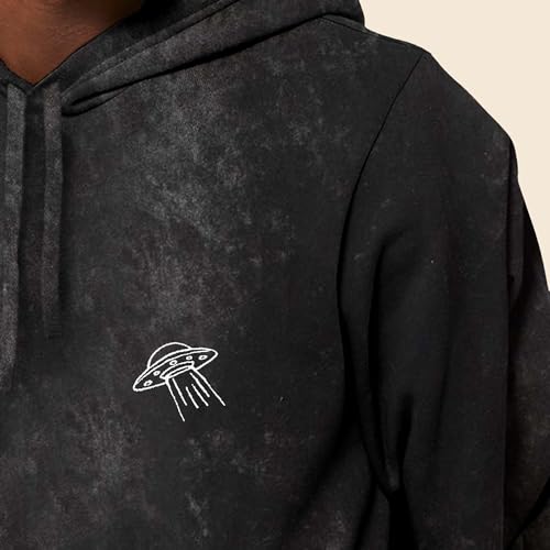 HOT ! DALIX UFO Embroidered Fleece Hoodie Mineral Wash Long Sleeve Sweatshirt Mens
