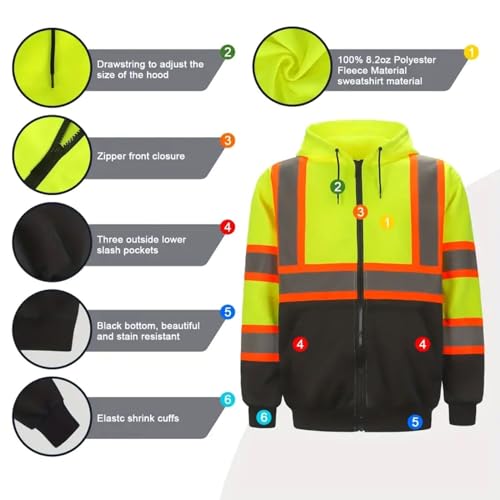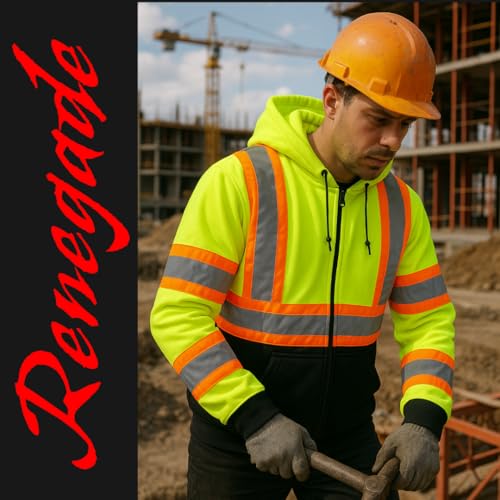 Renegade Mens Hoodie Hi VIS Visibility Safety Hooded Zip Sweatshirt, Black Bottom 6