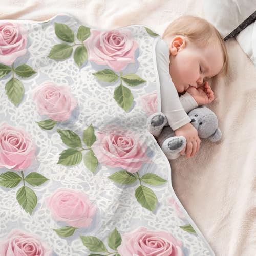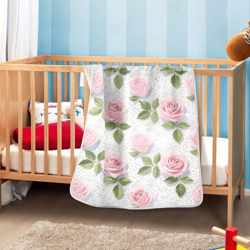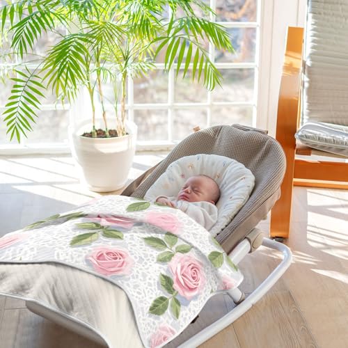 More information about Custom Trendy Pink Lace Rose Flowers Blanket for car seat Cozy Customise Name Monogrammed Blankets for Nursery Stroller Crib 30x40in para Bebes recien nacidos