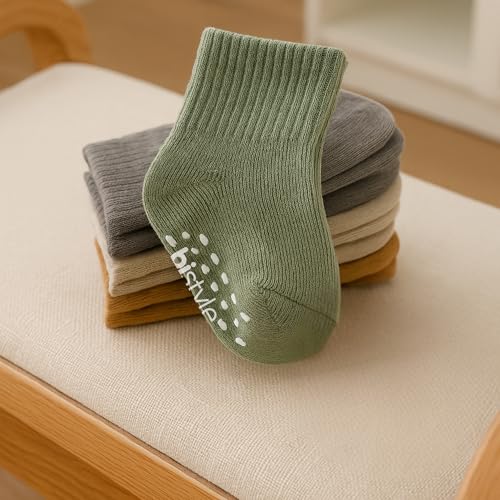 bistyle Baby Grip Ankle Socks 5 Pairs | Newborn Infant Toddlers Non-Slip Socks Organic Cotton | Kids Boys Girls Ankle 4