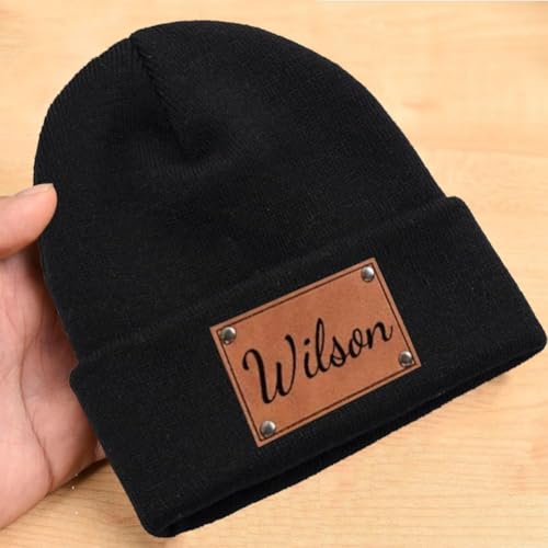 • 【High-Quality】 Our super soft and stretchy 100% acrylic beanies are customized to order with high quality vegan leather patches secured with stylish solid brass rivets in your choice of matte black, aged brass