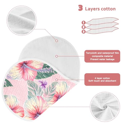 Hibiscus Leaves Sweet Pink Burp Cloths for Babies Burp Rag Cotton Spit Up Rag for Babies Newborn 4