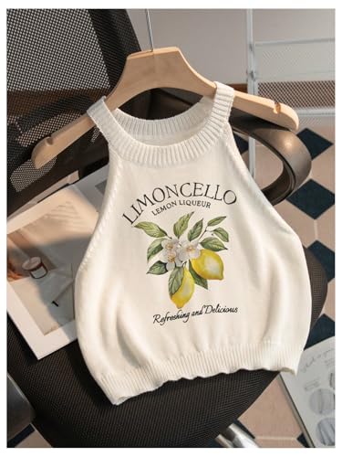 More information about Women's Lemon Graphic Sleeveless Sweater Tank Top Knitted Slim Fit Crop Halter Tops