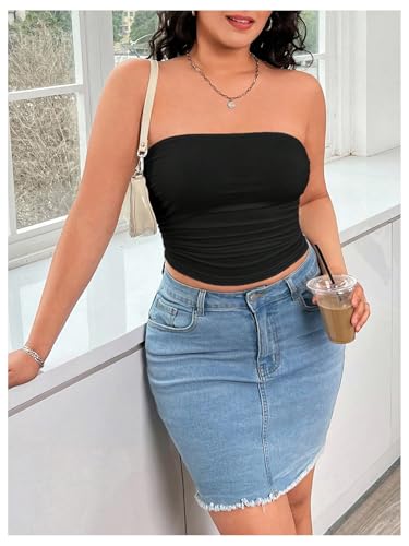 WDIRARA Women's Plus Size Strapless Ruched Crop Tube Tops Summer Slim Fit Sleeveless Bandeau Top 5