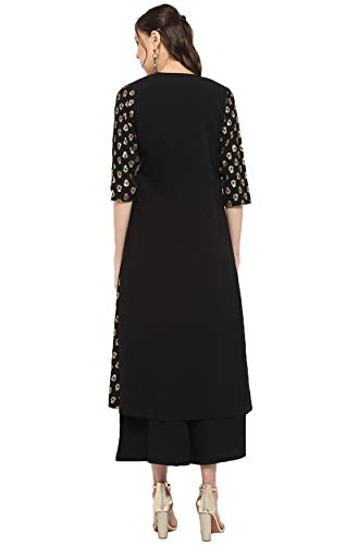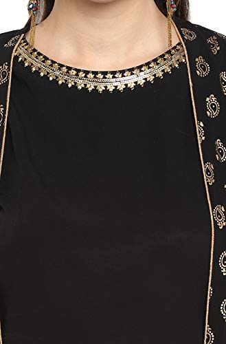 • Style:-Kurta Length: 17(inch), Bottom Length: 39(inch) | Pattern: Gold Print | Occasion: Festive | Type: Crop Top | Sleeve Type: 3/4 Sleeve Regular Sleeves | Color: Black