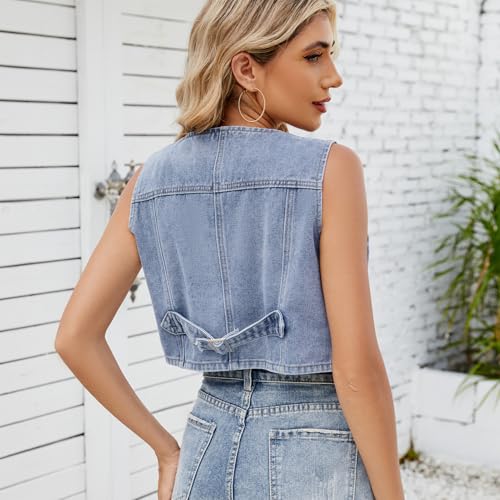 • Adjustable Waist for a Custom Fit: Featuring a stylish Exquisite buckle detail at the back, this Adjustable cropped denim jean vest tops allows for a tailored fit, ensuring both comfort and confidence throughout the day