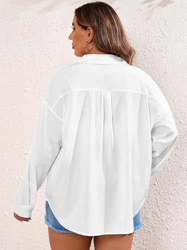 TAKEYAL Women's Plus Size Button Down Shirts Long Sleeve Polo Blouses Fall Business Casual Tops with Pocket 6