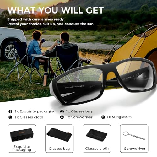 • Photochromic Lens: Engineered with intelligent light-reactive lenses that dynamically adjust from clear to dark in milliseconds. Please kindly note that a car's windshield can block more than 99% of UV rays, so most photochromic lenses will not show obvious color change in the car.