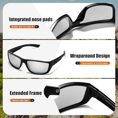 SUNGAIT Classic Rectangle Polarized Sunglasses for Men Womens UV400 Lightweight Cycling Running 5