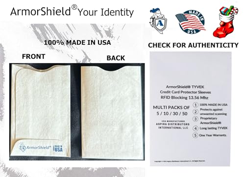 • ✅ ArmorShield Your Identity : Recommended by Bank Fraud Division: How much is YOUR identity worth? Safeguard against credit card scams. FIPS 201 APPROVED: Government approved to ensure total RFID blocking security.