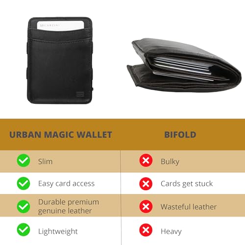 HOT ! Hunterson Magic Wallet, Minimalist Wallet for Men with RFID card holder, Leather Wallet for 8 cards, Black