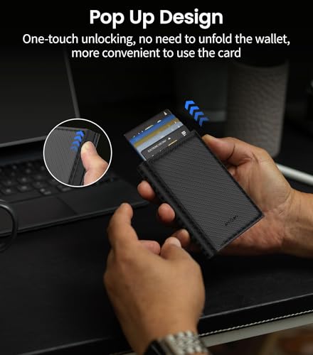 • Grande Capacity & Pop-Up Card Slot: This smart wallet for men holds 11 cards and 10 bills, engineered with a spring-loaded slot for one-touch card access, no unfolding required.