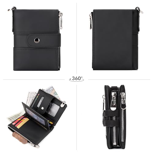 Mens Wallet with Chain, Genuine Leather Wallet RFID Blocking Bifold Purse Zipper Coin Pocket with Anti-Theft Chain 1