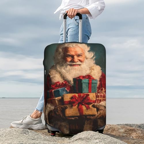 HOT ! Santa Claus Holding Presents Vintage Elastic Travel Luggage Covers Dustproof Scratch-Resistant Suitcase Protector Fit 22-24 Inch