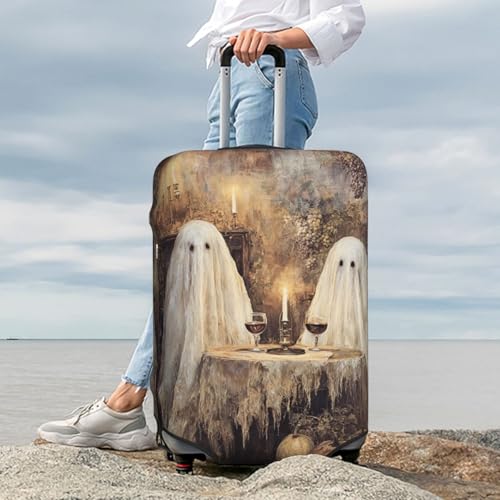 Two Ghosts Rustic Wooden Red Wine Glasses Elastic Travel Luggage Covers Dustproof Scratch-Resistant Suitcase Protector Fit 22-24 Inch 7
