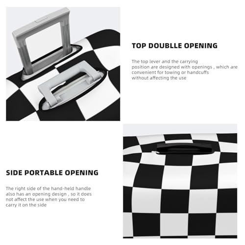 Black And White Plaid Print Suitcase Cover Luggage Protector Washable Elastic Fashionable Travel Gear Cover 3