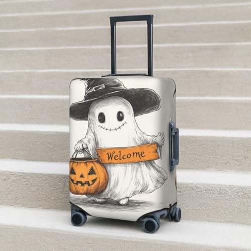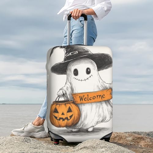 Cute Ghost Carrying Pumpkin Bag Elastic Travel Luggage Covers Dustproof Scratch-Resistant Suitcase Protector Fit 22-24 Inch 6