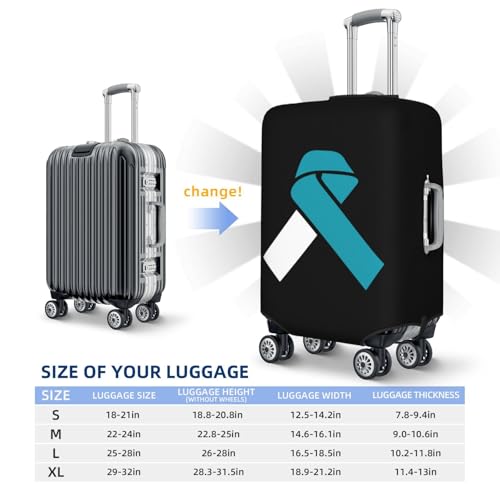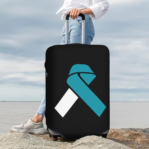 White and Teal Awareness Ribbon Cervical Cancer Travel Luggage Cover Suitcase Protector Fits 26-28 Inch Case(Black,L) 1